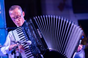 E’ l’ultimo prezioso acquisto del gruppo. Un vero mistico della fisarmonica perchè cresciuto all’ombra della basilica di Loreto. Passa con disinvoltura dalla musica antica alla bossa nova.